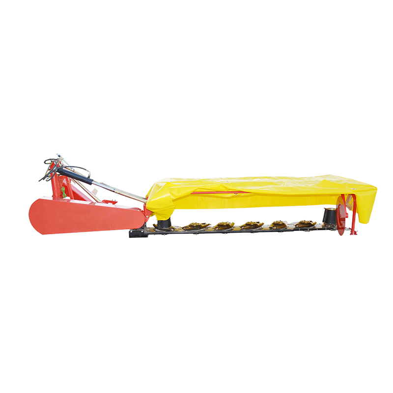 Deze hydraulische schijvenmaaier is aangesloten op de achtervering van de tractor en wordt aangedreven door een aftakas. Het beschikt over 3 tot 6 roterende messenschijven met hoge snelheid, elk uitgerust met twee of drie messen. De messen kunnen worden afgebogen wanneer ze grote obstakels tegenkomen, waardoor schade aan het mes wordt voorkomen. De roterende schijven concentreren het gras in het midden, zodat het gemakkelijk kan worden opgevangen.