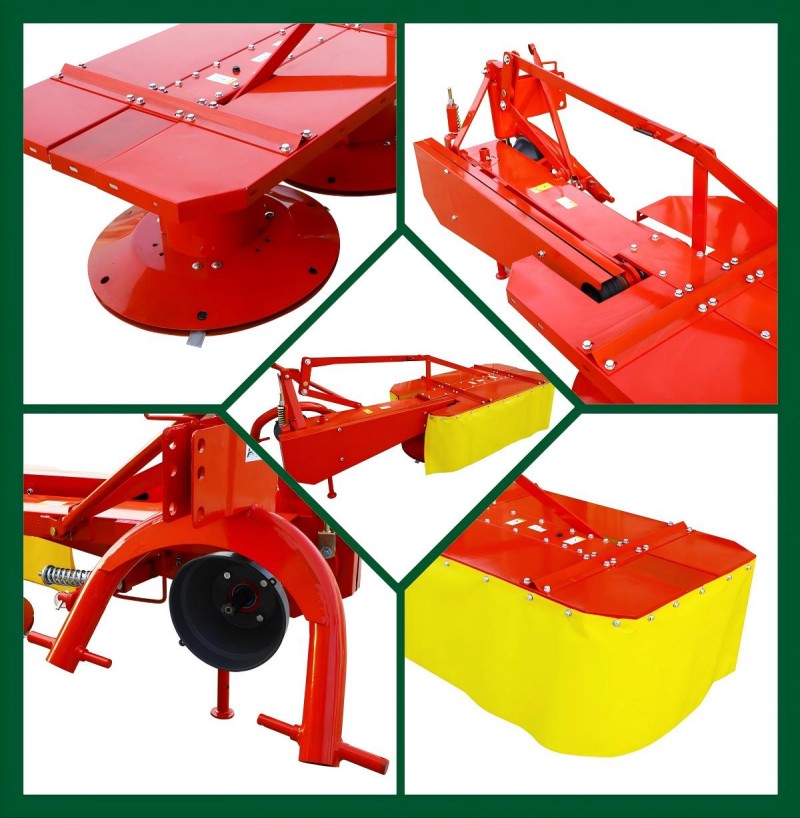 Gemonteerde drummaaier kan ook een dubbele schijfmaaier worden genoemd. Elke trommel heeft drie maaiende messen, die snel kunnen worden vervangen door eenvoudige gereedschappen. Het gras gesneden door de messen wordt tussen de twee trommels geplaatst, een losse plaats. Drie V-Belts verzenden vermogen naar de ingangswandelingsas en vervolgens naar de hoofdaandrijfas, die op zijn beurt de trommel door het kegelverwandelingen drijft. Er is een scheidingsapparaat op de drummaaier, die automatisch werkt wanneer de maaier een obstakel raakt. Dit beschermt de trommel tegen schade.